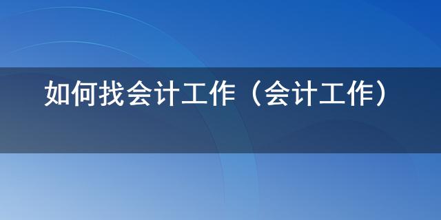 最近這段時間總有小伙伴問小編如何找會計工作是什么,小編為此在網(wǎng)上搜尋了一些有關于如何找會計工作的知識送給大家,希望能解答各位小伙伴的疑惑。