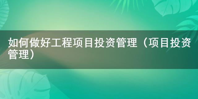 關于如何做好工程項目投資管理(項目投資管理)的知識大家了解嗎?以下就是小編整理的關于如何做好工程項目投資管理(項目投資管理)的介紹,希望可以給到大家一些參考,一起來了解下吧!