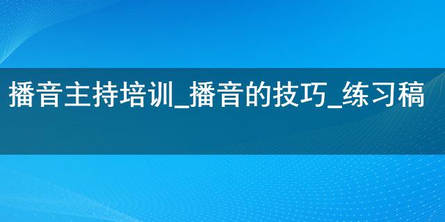 最近小編看到大家都在討論播音主持培訓_播音的技巧_練習稿相關(guān)的事情,對此呢小編也是非常的感應興趣,那么這件事究竟是怎么發(fā)生的呢?具體又是怎么回事呢?下面就是小編搜索到的關(guān)于播音主持培訓_播音的技巧_練習稿事件的相關(guān)信息,我們一起來看一下吧!