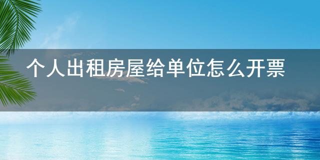 關(guān)于個人出租房屋給單位怎么開票的知識大家了解嗎?以下就是小編整理的關(guān)于個人出租房屋給單位怎么開票的介紹,希望可以給到大家一些參考,一起來了解下吧!