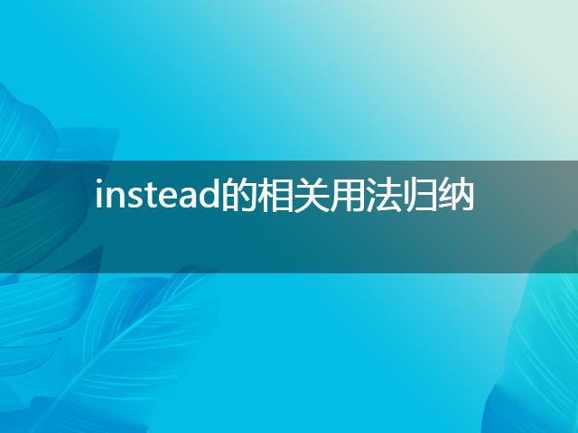 隨著社會越來越發(fā)達,大家都選擇在網(wǎng)絡上汲取相關知識內容,比如instead的相關用法歸納,為了更好的解答大家的問題,小編也是翻閱整理了相應內容,下面就一起來看一下吧!