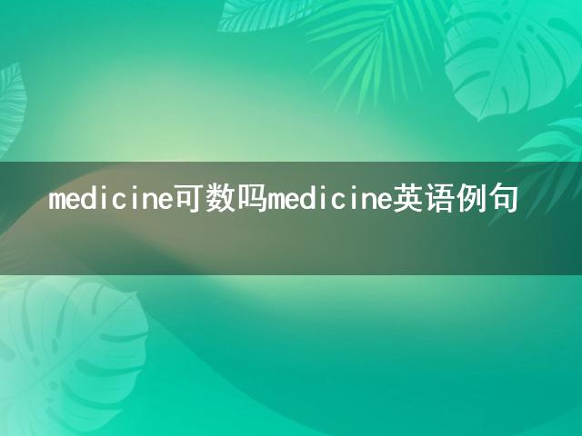 最近這段時間總有小伙伴問小編medicine可數(shù)嗎 medicine英語例句是什么,小編為此在網(wǎng)上搜尋了一些有關(guān)于medicine可數(shù)嗎 medicine英語例句的知識送給大家,希望能解答各位小伙伴的疑惑。