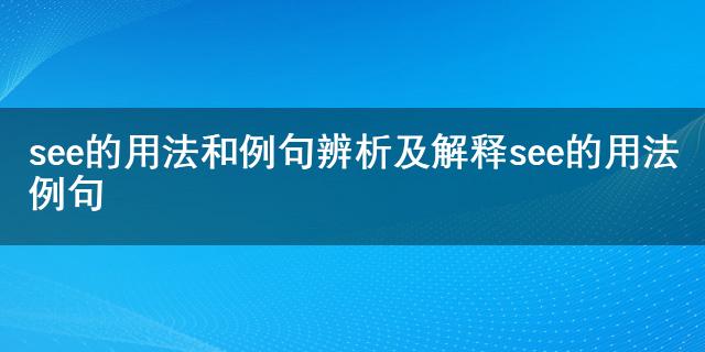最近小編看到大家都在討論see的用法和例句辨析及解釋 see的用法例句相關(guān)的事情,對(duì)此呢小編也是非常的感應(yīng)興趣,那么這件事究竟是怎么發(fā)生的呢?具體又是怎么回事呢?下面就是小編搜索到的關(guān)于see的用法和例句辨析及解釋 see的用法例句事件的相關(guān)信息,我們一起來看一下吧!