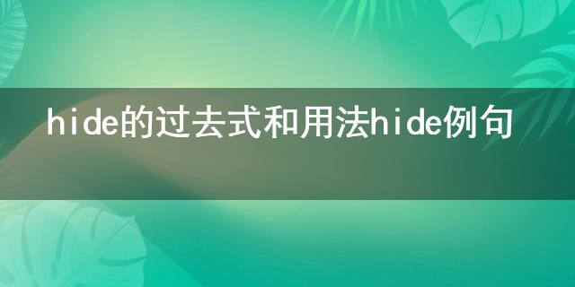哈嘍小伙伴們 ,今天給大家科普一個小知識。在日常生活中我們或多或少的都會接觸到hide的過去式和用法 hide例句方面的一些說法,有的小伙伴還不是很了解,今天就給大家詳細(xì)的介紹一下關(guān)于hide的過去式和用法 hide例句的相關(guān)內(nèi)容。